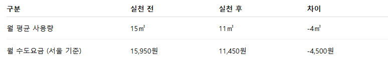 📊 수도요금 절약 효과 계산 예시